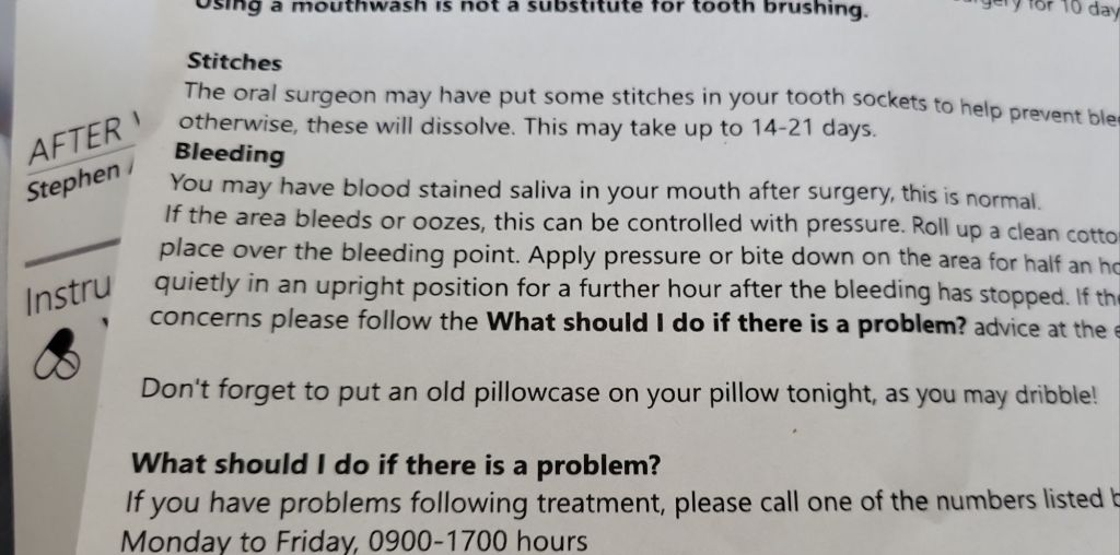 I lay on the operating bed and felt the intense ache as the anaesthetic worked it’s way up my arm, managing just enough muscle movement in my other arm to raise a lazy thumbs up to the team of three medical professionals working around me. Paul asked me to think of a beach, and a cocktail, and some sunshine. I drifted off dreaming of a beach in Southern Fuerteventura, which I hope to visit in August with Emma. Time passed. Then, a faceless woman’s voice echoing and bouncing off the walls of my empty head, “Stephen! Stephen! Wake up Stephen!” she commanded with authority. And then, just like that, it was done. I woke up with my right arm raised still convinced I was holding a glass of wine and oddly yelled something instructive and demanding directed at my non-present work colleagues through swollen, bleeding and dribbling lips. Eventually, a very kind close friend gave me a lift home and now here I lay writing this.